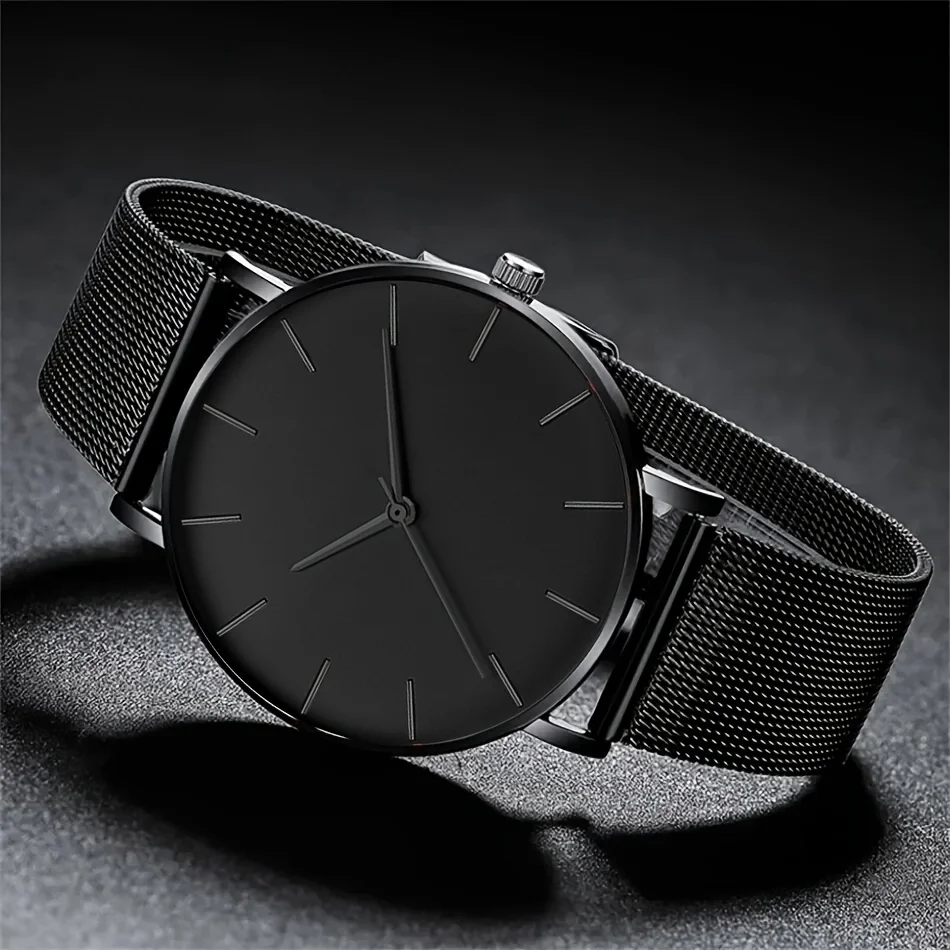 Thanks to its minimalist design, the All Black Men's Watch perfectly complements any look, from casual wear to elegant suits. It’s the ultimate accessory to elevate your daily style!